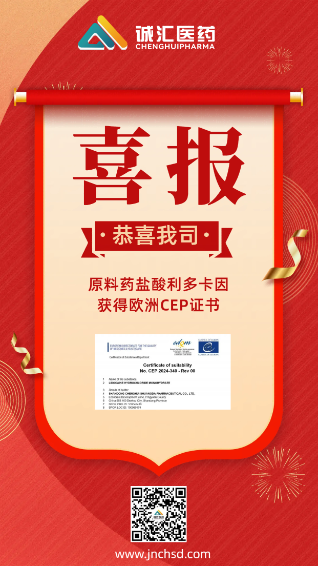 2025年11月10日,我公司原料藥鹽酸利多卡因歐洲CEP注冊(cè)獲批,并已收到歐洲藥品質(zhì)量管理局(EDQM)頒發(fā)的歐洲藥典適用性證書(CEP證書)。